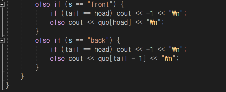- back: 큐의 가장 뒤에 있는 정수를 출력한다. 만약 큐에 들어있는 정수가 없는 경우에는 -1을 출력한다.