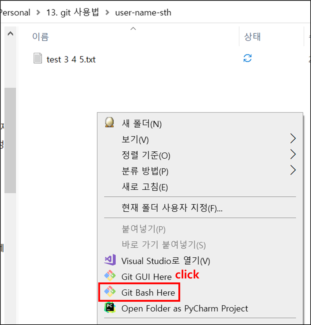( 1번에서 git 홈페이지에서 복사한 html 주소를 붙여넣기 함. 오른쪽 마우스 클릭 -> paste )