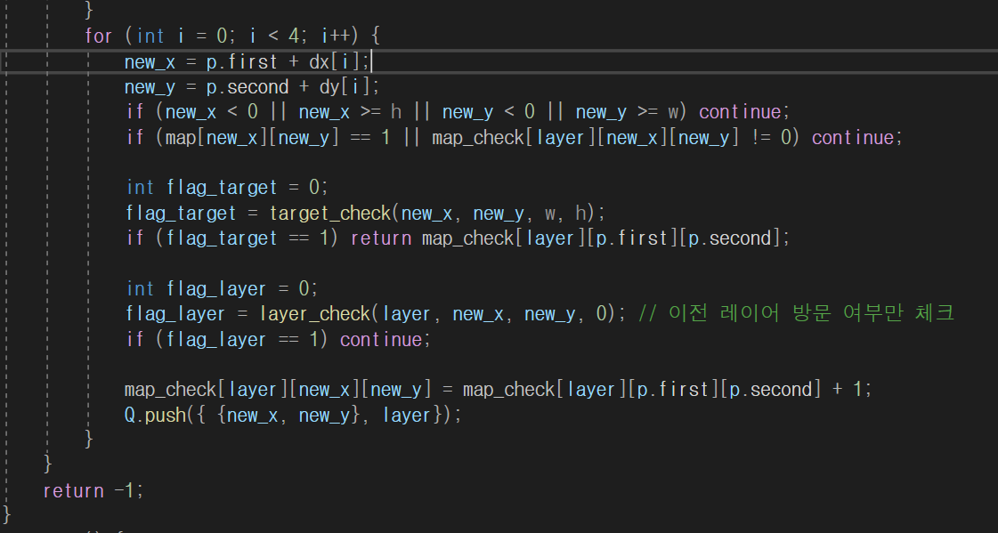 +이전 레이어 방문 여부만 체크 - 목표 지점에 처음 도달시 종료.