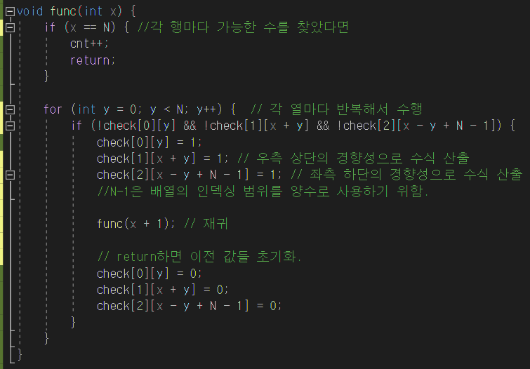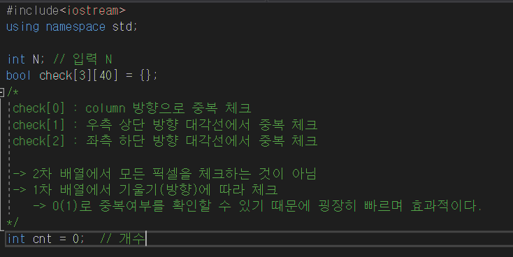 - 이전 Queen들의 이동 방향성을 체크하는 것이 주된 키